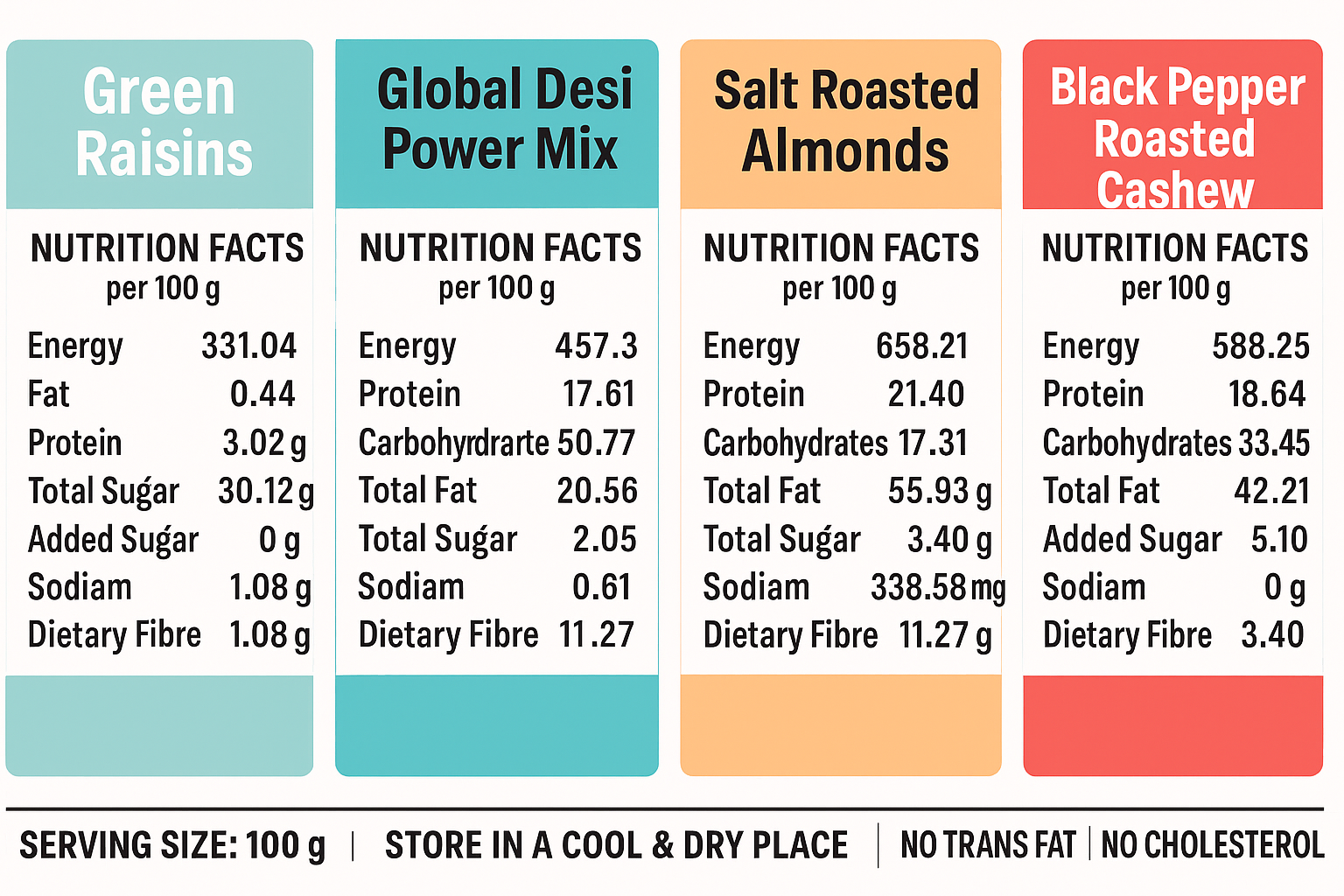 * 🟦 **Global Desi Power Mix** – A power-packed fusion of nuts, seeds, and dried fruits