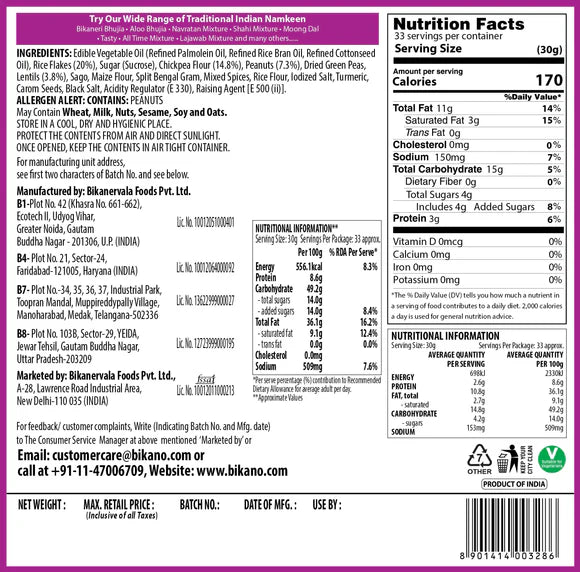 Bikano Khatta Meetha is a delightful blend of sweet and tangy flavors crafted to perfection. This traditional Indian snack combines the crunch of sev, boondi, fried lentils, and peanuts with a unique mix of spices, creating a perfect balance of khatta (tangy) and meetha (sweet) tastes. Ideal for tea-time snacking or as a light munch between meals, it offers an authentic taste of Indian namkeen loved by all age groups.