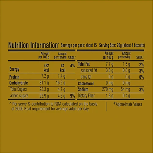 Marie biscuits that are crisp, light, and enriched with vitamins and minerals—ideal as a healthy tea-time companion. They come in several pack sizes: **50 g**, **83 g**, and **300 g**.