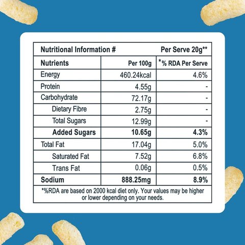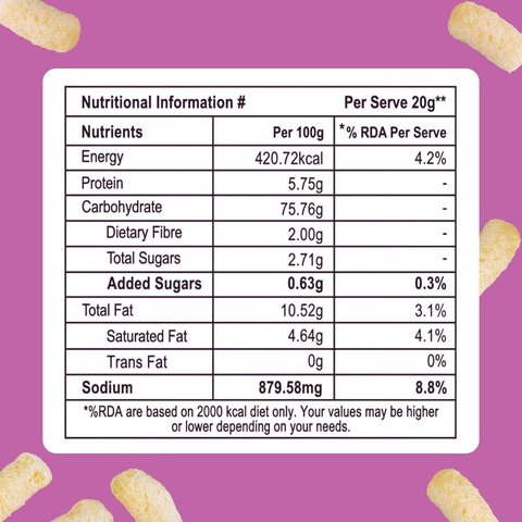 A light and crispy rice-based puff snack infused with the tangy-savoury flavour of cream & onion. Ideal for quick snacking or parties, this flavour delivers a balanced mix of crunch and zest.