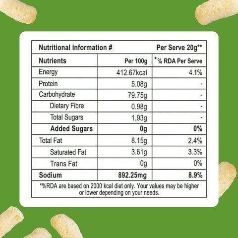 A fun and flavourful puff snack with refreshing pudina and tangy masala seasoning. Light, crunchy, and absolutely addictive.