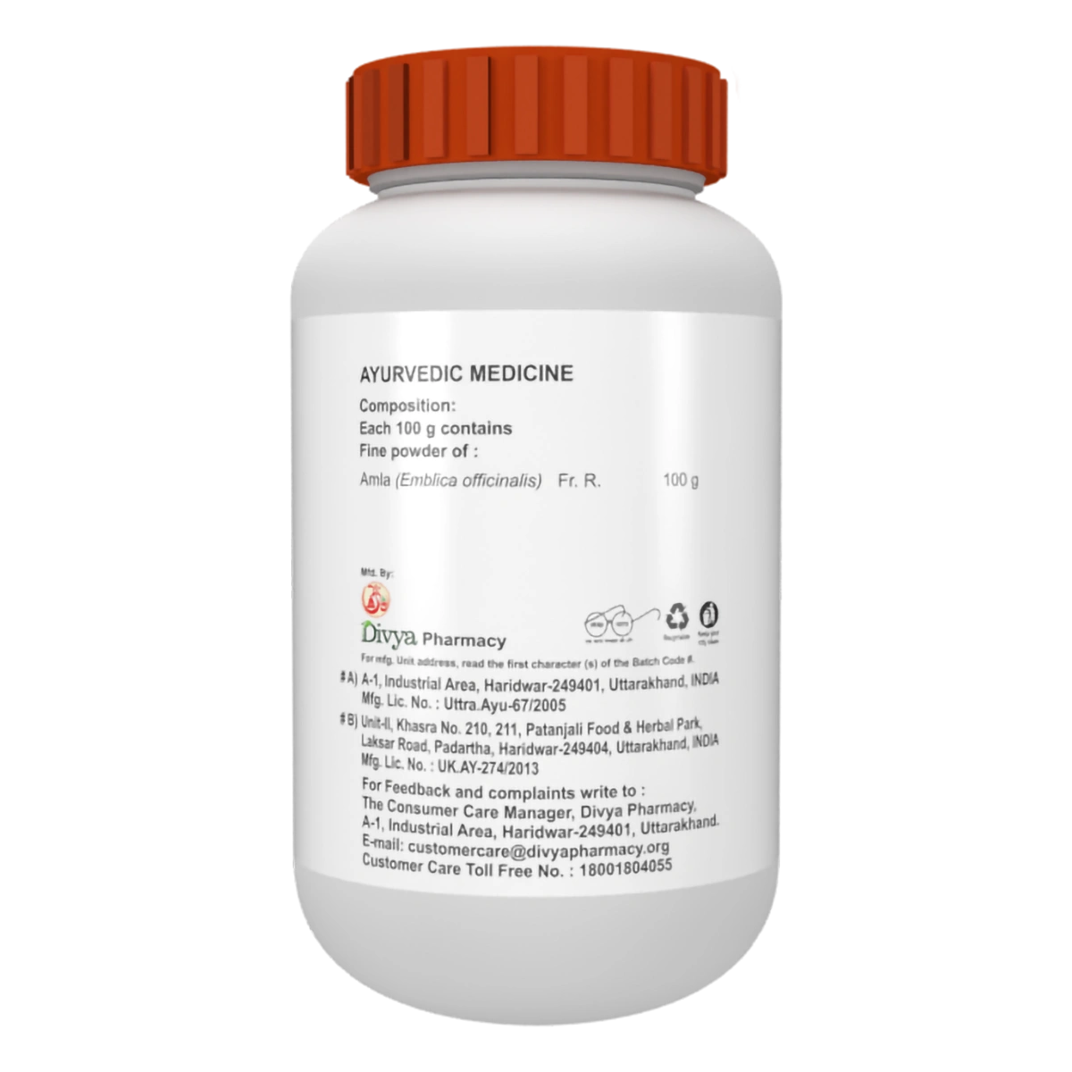 Divya Amla Churna is a pure and natural Ayurvedic formulation made from high-quality **Amla (Indian Gooseberry)**. Known for its exceptional Vitamin C content and powerful antioxidant properties, Amla supports overall health and wellness. It helps strengthen immunity, improves digestion, supports healthy skin and hair, and promotes natural detoxification.