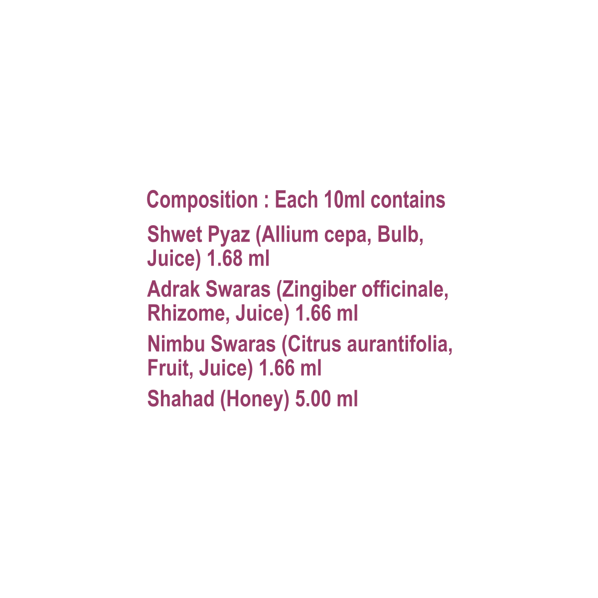 Shwet pyaz, Adrak swaras, Nimbu swaras, Shahad
