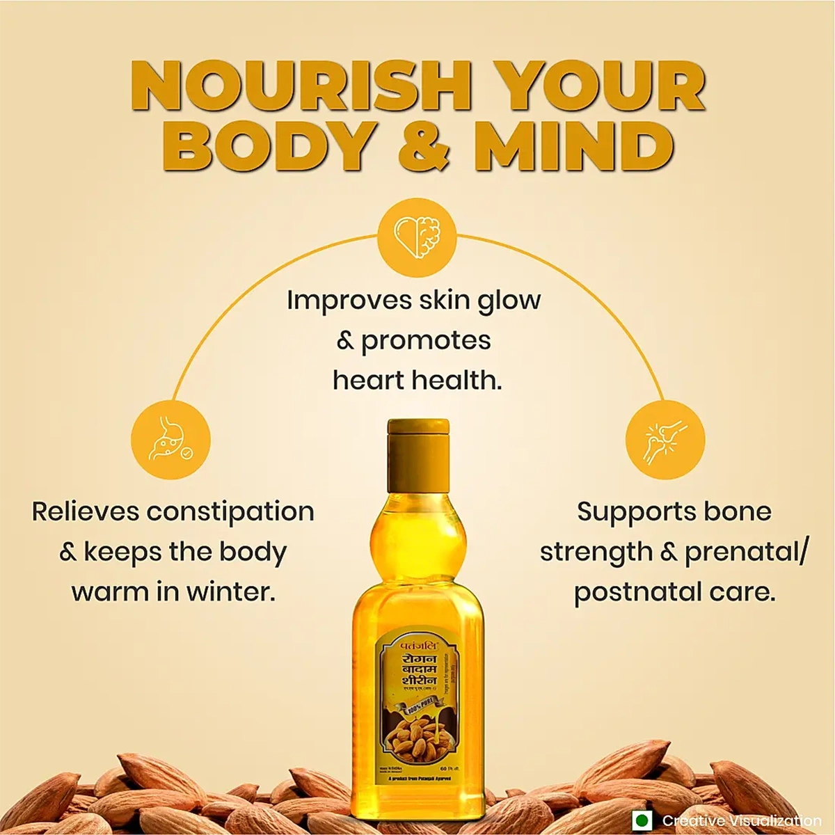 Patanjali Badam Rogan is a type of oil, which is extracted from the original badam nuts and nourished almonds. Patanjali Badam Rogan strengthens mind and nervous system. This medicine fortifies each and every cell and energizes it from within.
