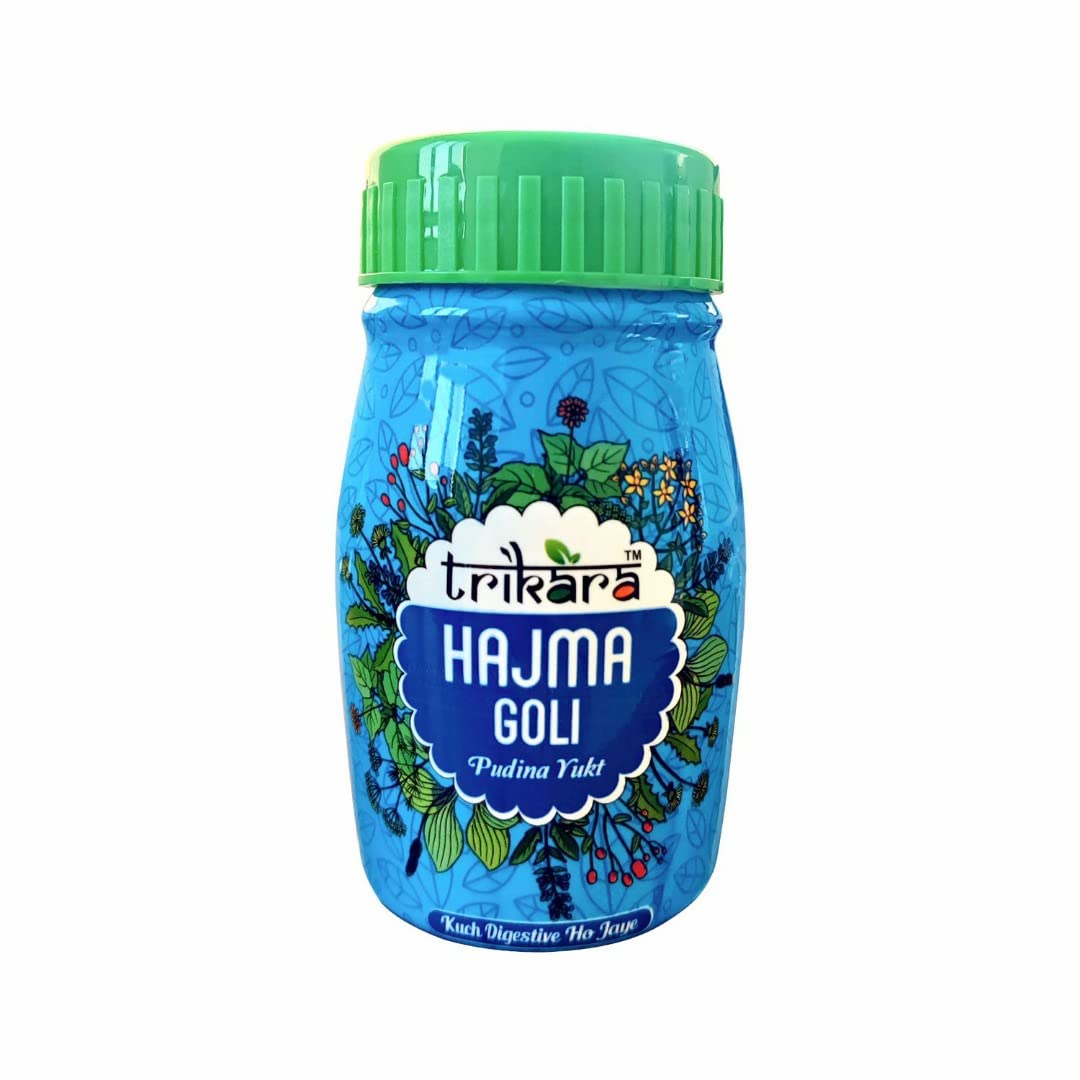 Trikara Hajma Goli (Puudina Yukta) from MAAN ORGANIC FARMS is a refreshing and effective digestive candy crafted using **rich-quality mint leaves, Svetajiraka, Nimbu, and a blend of digestive herbs and spices**. This traditional Ayurvedic formulation helps prevent common stomach disorders caused by indigestion, gas, acidity, or heaviness after meals.
