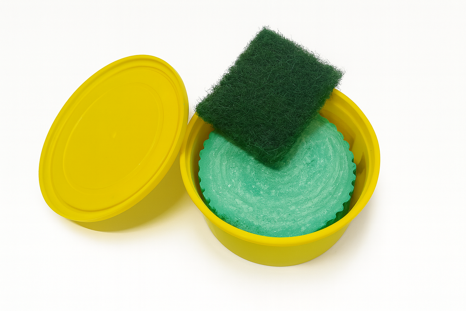 1. Wet scrubber and apply a small amount of S.S.I. Dish Wash.